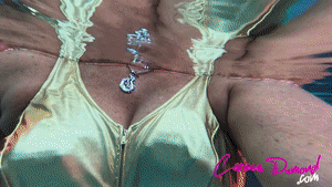 When you find out that there is a Blue Hole in Texas where dinosaurs used to traverse and hang out, you just have to go check it out! I've been to several blue holes, but this one was original in that it had petrified dinosaur prints in the clay and was very warm; at least it started out warm in the shallow area until I decided to take a dip in the actual "hole", where the spring head is located. It was a little eerie; you can't see the bottom, and it is a greenish yellow hue to the water, making visibility very limited! My imagination kept getting the best of me, envisioning a large prehistoric fish coming up and deciding to take me as it's tasty morsel for the day! However, I will tell you, the 'hole' was actually very cold, which was a nice change from the hot humidity of this area as well as the lukewarm water in the shallow end. As you can see, I'm wearing my neoprene booties, not fins, because the rock is very slippery and can be a nasty fall when walking on the petrified clay to get to the hole. So, I have limited mobility with little feet and only my arms to help propel me through the water--not a very comfortable situation but I wasn't NOT going to go in!! I'm wearing one of my micro bikinis and this video shows you my up-close view as well as the surface view looking down at me; kind of a two-for-one! Check out my rounded booty, my ample breasts spilling out of my top, and my belly button underwater. Quite a treat for you to enjoy!